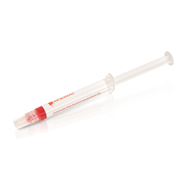 EL CONDICIONADOR ÁCIDO GEL FLUORHÍDRICO es utilizado para grabado ácido de las superficies internas y externas de cerámicas dentales (cerámicas condicionales). Es indicado para grabado ácido de cerámicas odontológicas, en restauraciones indirectas con sistemas resinosos adhesivos y reparación de restauraciones cerámicas con composites.