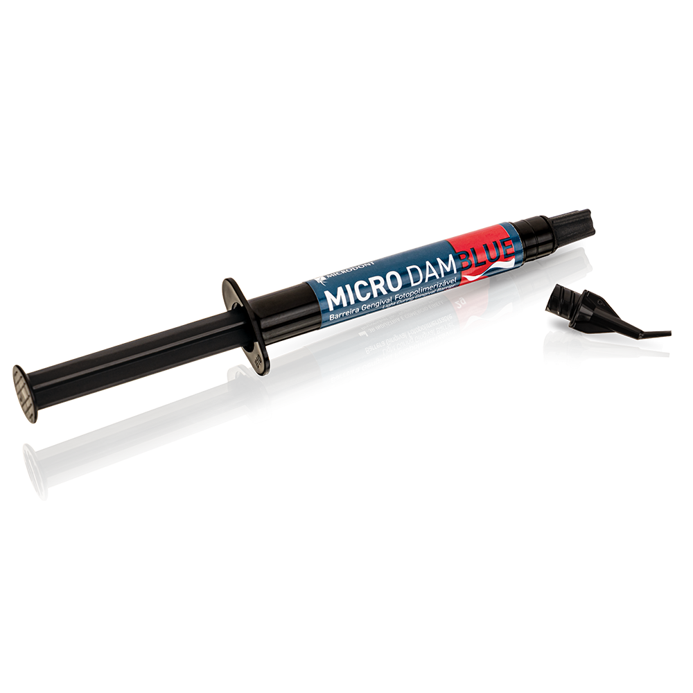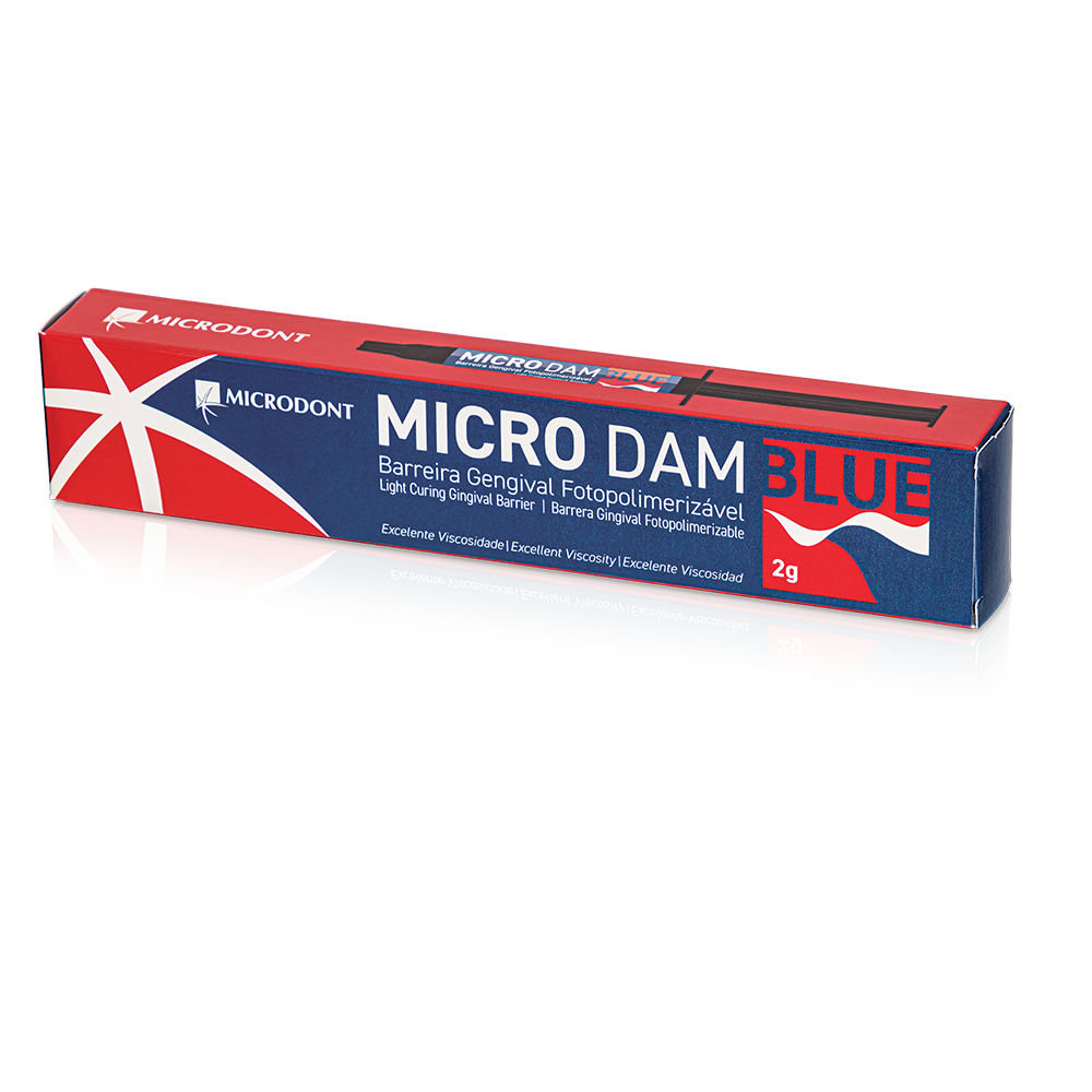 MICRO DAM BLUE de Microdont es un gel de color azul indicado para el aislamiento de surcos y encías que actúa de forma protectora, evitando molestias y garantizando un mejor resultado final del blanqueamiento dental.